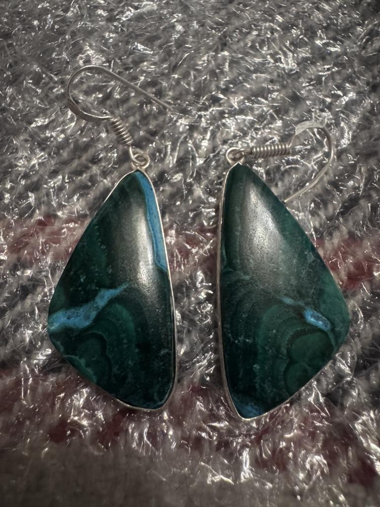 Natural Chrysocolla Malachite Gemstone 925 Sterling Silver Earring 2.17" AE-11680