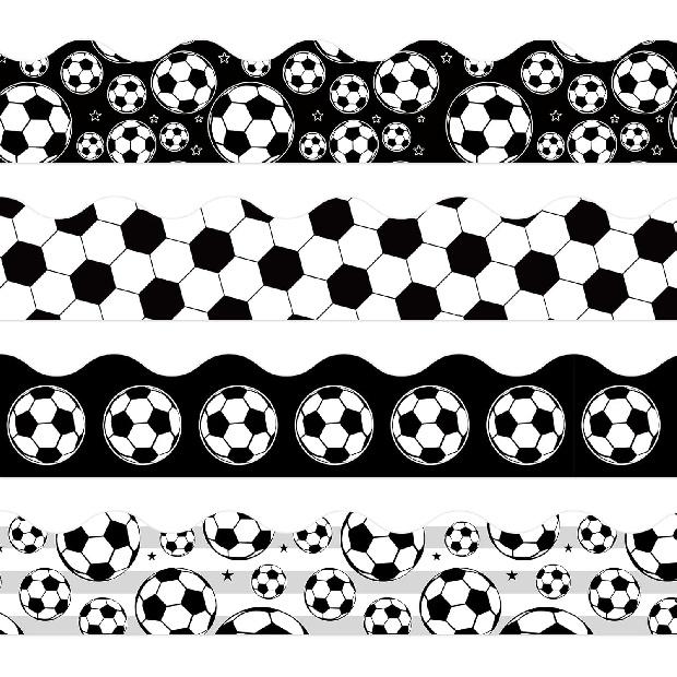 Whaline 69 Ft Soccer Ball Bulletin Board Borders Black White Sport Self-Adhesive Border Trim Scalloped Border Sticker Decals for Home Classroom Party