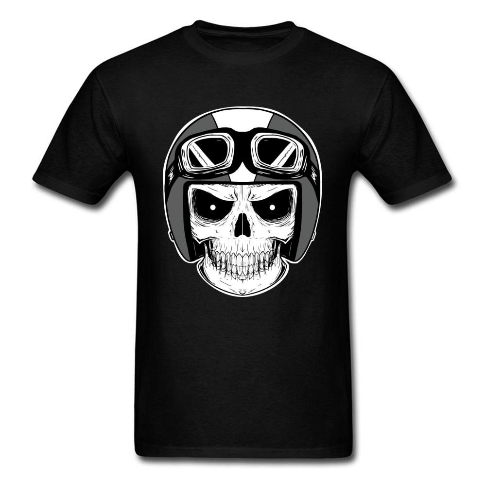 Moto Biker Tshirt Mens Tshirts Punk Skull Helmet T Shirt Funky Short Sleeve Tops Tees O Neck All Cotton Clothes Faddish Black