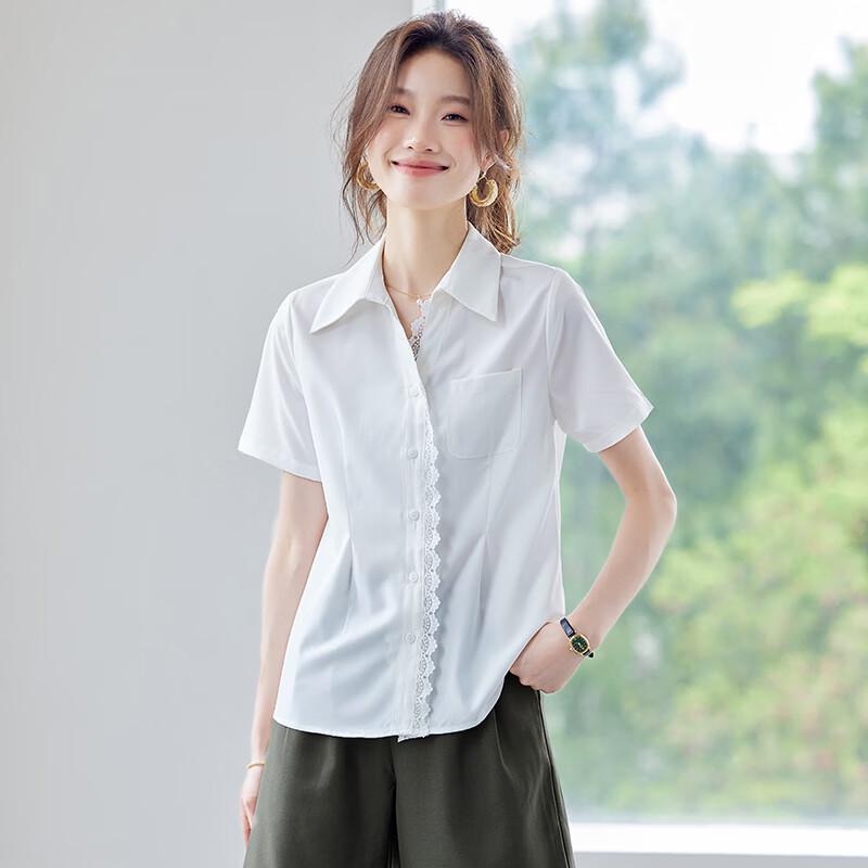 Women's Lace Patchwork Short Sleeve Collared Blouse