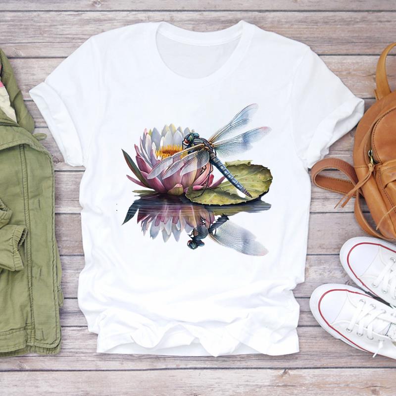 Women Print Lady Tee Top Dragonfly Flower Trend 90s Clothing Casual Short Sleeve Fashion Tshirt Female Graphic T-shirts