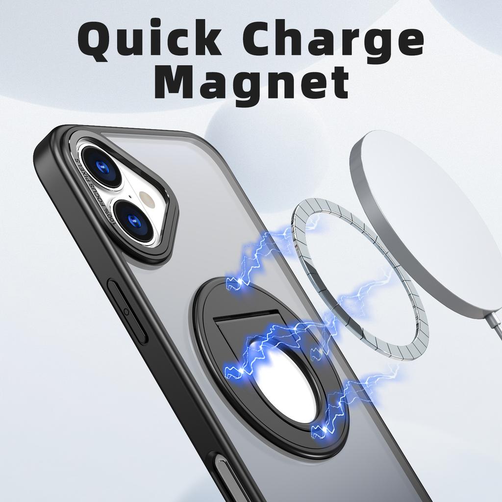 For iPhone 16 Plus Clear Back Case Rotating Kickstand TPU+PC Phone Cover Compatible with MagSafe