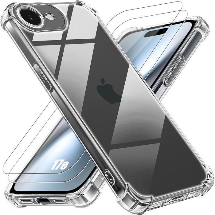 Coque + 2 Verres Trempés pour iPhone 17e, Protection Silicone Antichoc Coins Renforcés Transparent