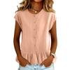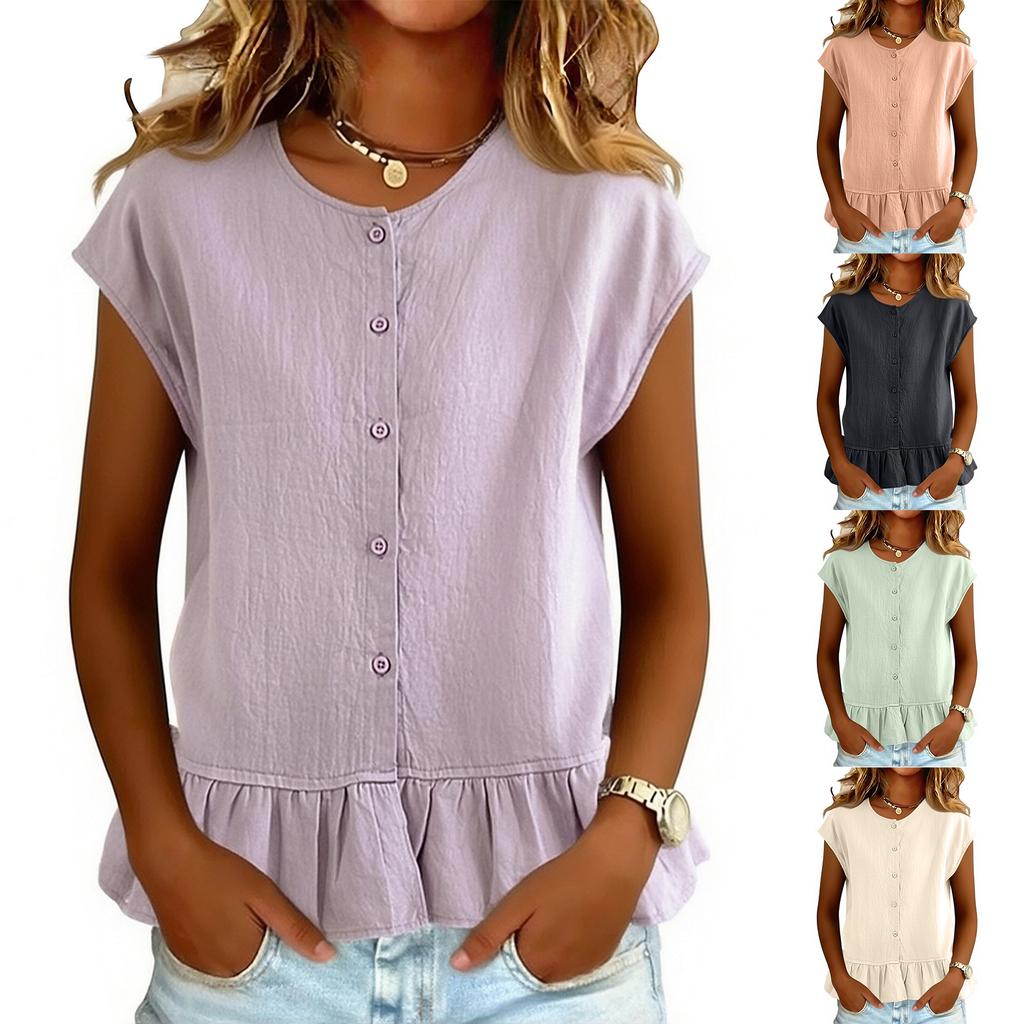 Women Short Sleeve Ruffle Hem Peplum Tops Crewneck Button Down Shirts Casual Fashion Blouse