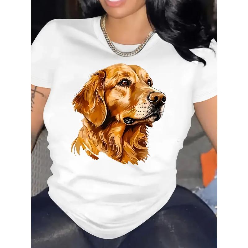 European Size Women's Casual Short Sleeve T-Shirt with Cute Golden Retriever Graphic Print - Soft Stretch Round Neck Tee