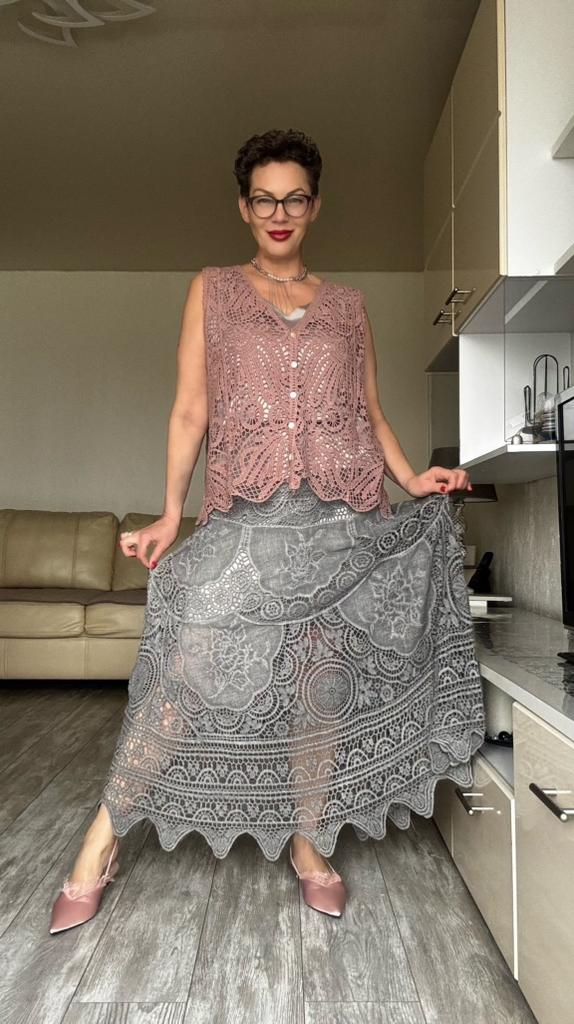 DIMANAF 2026 New Holiday Skirt Women Knitting Lace Solid Hollow Out Sexy Hollow Summer Style Loose Basic Dress
