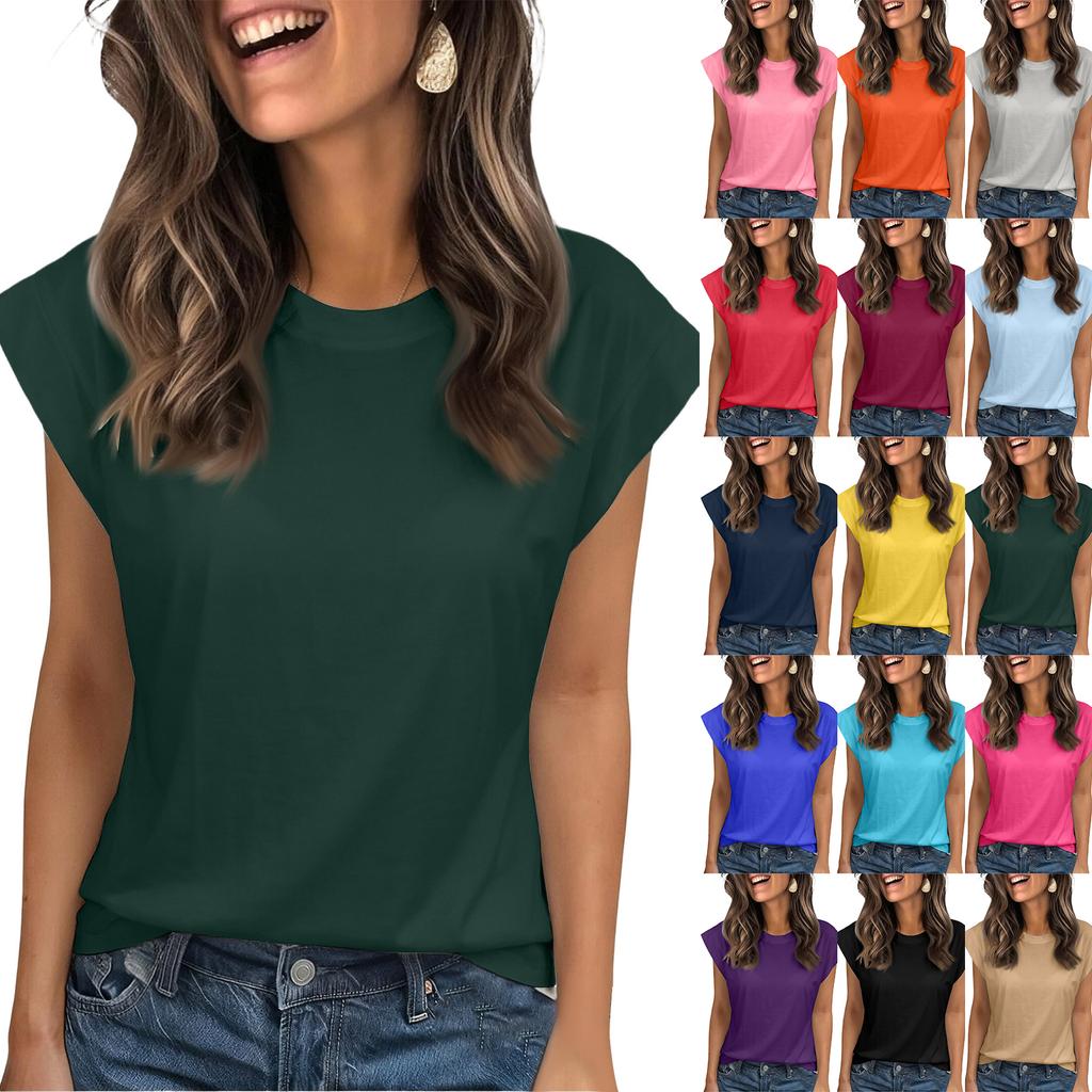 Fashionable Women's Loose Round Neck Short Sleeved T-shirt Color Top Vest For Women