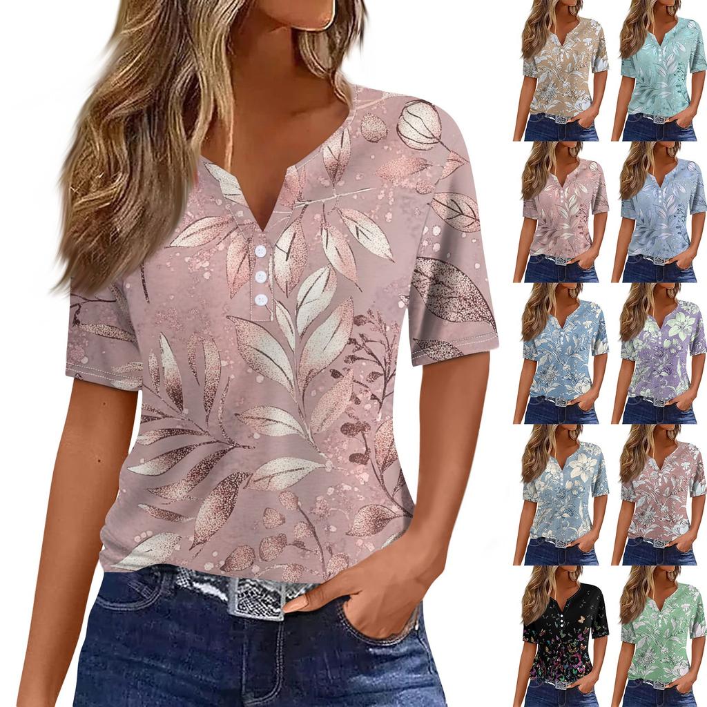 Women's T Shirt Tee Print Button Short Sleeve Daily Weekend Fashion Basic V- Neck Regular Top