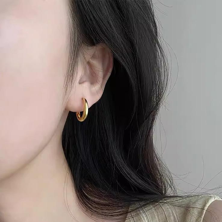 Daily Glossy Vein Earrings Light Luxury Senior Sense Niche Minimalist Personality Versatile Circle Women's Ear Jewelry