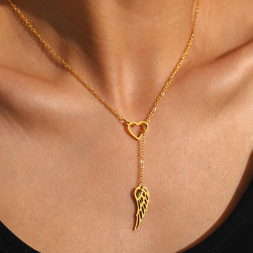 Stainless Steel Necklaces Elegant Heart Feather Pendant Clavicle Chain Fashion Exquisite Necklace For Women Jewelry Wedding Gift