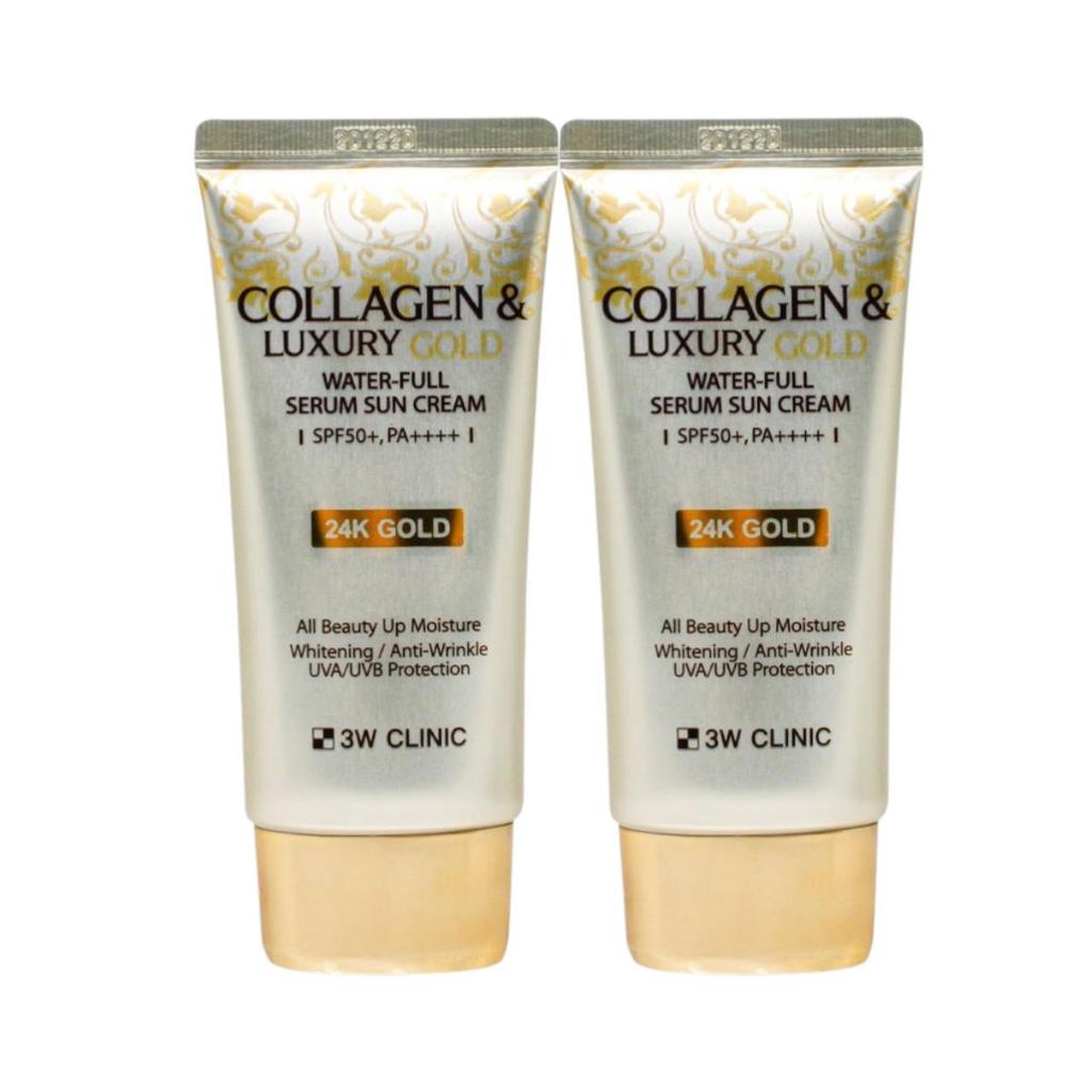 3w Clinic Collagen & Luxury Gold Water-Full Serum Sunscreen - Intense Hydrating UV Protection Duo (Set of 2) - 50g X 2 / 1.76 Oz. X 2