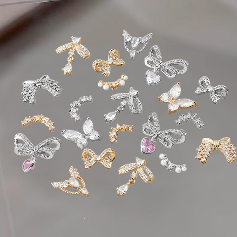 1Pcs Shiny Zircon 3D Butterfly Bow Nail Rhinestones Charm Diamond Crystal Alloy Pendant Luxury Nail Art Decorations Manicure Too