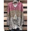 Women's V-neck Leopard Print Contrast Stitching Long-sleeved T-shirt Top