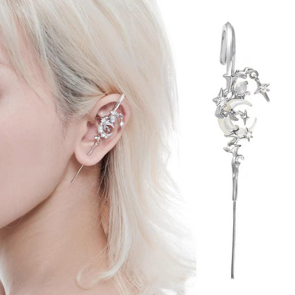 Myth Of The Moon Ear Hook Earrings Goth Sword Earrings Punk Moon Needle Piercing Earring Star Earrings Halloween Jewelry Gift