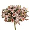 Plastic Flower Real Touch Clear Texture Faux Silk Colorful Artificial Rose Bouquet for Wedding