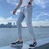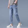 Introducing our latest addition for the fashion-forward man: these light-colored elastic skinny jeans. Crafted with a comfortable cotton blend, these 9-point length jeans offer a stylish Korean-inspired look, perfect for embracing the essence of spring. These slim-fit pants provide a sleek silhouette while ensuring flexibility and comfort for everyday wear. Ideal for youthful, trendy wardrobes, these jeans effortlessly combine modern style with practicality, making them a must-have for the season.
