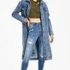 Women Denim Jacket Retro Mid Length Turn-down Collar Button-down Outerwear Solid Color Long Sleeve Coat With Chest Pockets