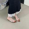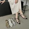 French pointed thick heel strap sandals fairy shoes 2025 new summer with skirt toe silver Roman shoes