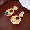 Medieval Vintage Rhombus Flower Earrings Retro Light Luxury High-end Earrings Niche Court Style Earrings