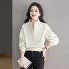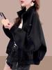 Fashionable Stand Pullover Plus Velvet Sweatshirt for Women 2025 Autumn New Black Loose Half-zip Short Top