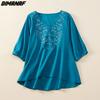Dimanaf 2024 גודל פלוס קיץ חולצה חדשה חולצה נשים רקמה פרחונית אלגנטי ליידי וינטג 'רופף אוברסייז מזדמן חולצות דק כפתור