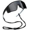 OCEAN KILLY WATER Floating Organic Lightweight UV Detachable Strap Shiny Black Smoke Sunglasses, Bio-Based Frame, Protection, & Floater, (Polarized