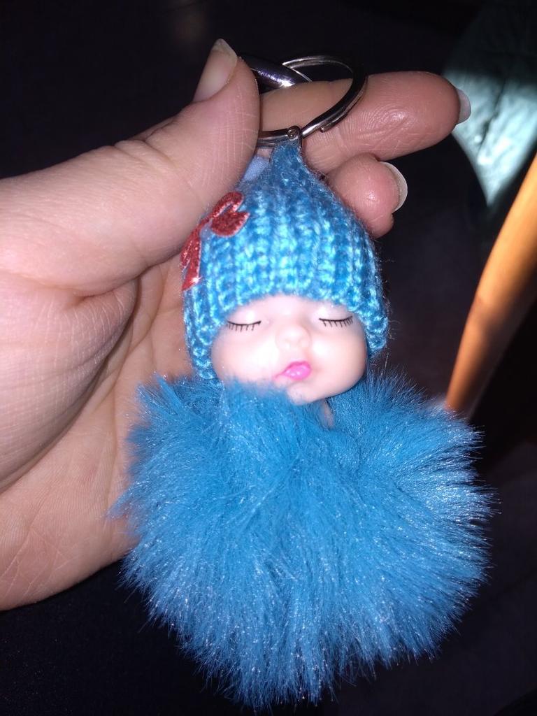 Simpatico bambino che dorme in soffice pelliccia di peluche con ciondolo per bambola, portachiavi, portachiavi, decorazione per borsa