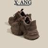 Leather Daddy Shoes Women's Spring New Fashionable Versatile Thick-soled Inner Height-increasing Women's Shoes Casual Sports Shoes