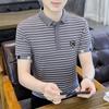 Men's Striped Ice Silk Polo Shirt - Casual Summer Short Sleeve