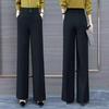 Women Suit Pants High Waist Straight Wide Leg Long Pants with Pockets Solid Color