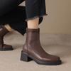 Fashion 2025 NEW Autumn/Winter Women Boots Round Toe Med Heel Chelsea Boots Split Leather Shoes for Women Retro Ankle Boots Modern