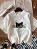 (Asian Size) Fashion Print Cat Trend Style Sweet 90s Female Casual Women's Top Casual T Clothing Graphic Tee Short Sleeve T-shirt