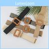 Summer Women Braided Belt Square Wooden Buckle Vintage Boho Straw Woven Belt
