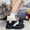Female Shoes Punk Style Ankle Booties Ladies Snow Boots Elegant with Medium Heels Lolita Combat Mary Janes Lamb on Slip Plush Pu