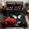 1pc Grey Fitted Sheet Red Rose Flowers Butterfly Print 100% Polyester Cover Breathable Bedding Set Home Decor without Pillowcase