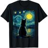 Katt Stjernenatt Van Gogh Katt for Katteelsker T-skjorte Casual Mote Streetwear Løs Sommerstil Mann T-skjorte Søte Estetikk T-skjorter