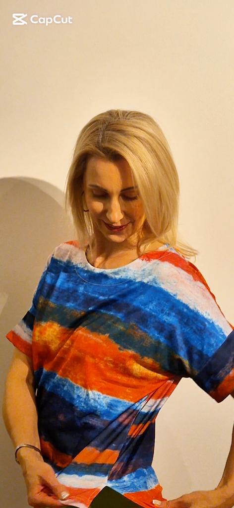 💃 Den svært komfortable skjorten i to forskjellige design og et mangfold av ekstra store størrelser ble levert til meg i Østerrike etter fem leveringsuker, best mulig pakket og konsolidert.. 💃 Denne overdelen har trykkmønster, er utmerket bearbeidet, kortere foran enn bak og har rund hals.. 💃 Jeg føler meg absolutt komfortabel i den skjorten og nyter den mot huden. Jeg vasker skjorten på 30 grader i vaskemaskinen, og siden den ikke krøller lett, er stryking ikke nødvendig.! 👍💃🔝 Jeg anbefaler denne skjorten på det varmeste 👍! 🎶 Musikk fra Capcut pro