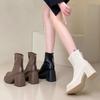 British style thick heel platform Martin boots women's 2025 new autumn and winter Internet celebrity height increase small high heel short boots