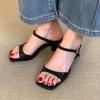 Comfortable 2024 summer new versatile fairy style thick heel low heel French open-toe one-word buckle Roman sandals