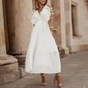 Women's Fashion Elegant Temperament V-neck Tie A-line Solid Colour Dresses