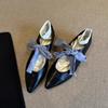 Cowhide version~ pointed lace-up literary and artistic ballet shoes for women's niche light luxury bow shallow mouth Mary Jane single shoes