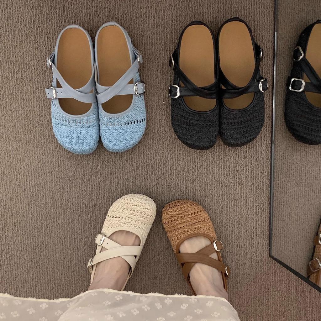 Late evening breeze wearing women's new 2025 spring and summer vacation with Mary Jane half slippers