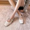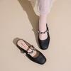 2025 summer new versatile temperament square head folds one pedal rhinestone buckle belt Muller leather half slippers