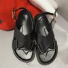 Sheepskin version~ Classic women's retro cross-strap leather open-toed Roman sandals women's summer platform with socks sandals