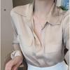 Vår høst sateng bluse imitert silke langermet skjorte for kvinner i pluss størrelse løse topper