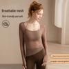 Plus Size Women's Breathable Mesh Long Sleeve Yoga Top with Chest Pad - Slimming Autumn Fitness Wear