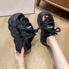 New summer 3xl lace bow bag head half slippers women's old polished platform dad shoes