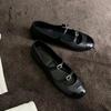 Sheepskin version round head double buckle belt Mary Jane shoes women's commuter low heel flat sole shoes leather ladle shoes