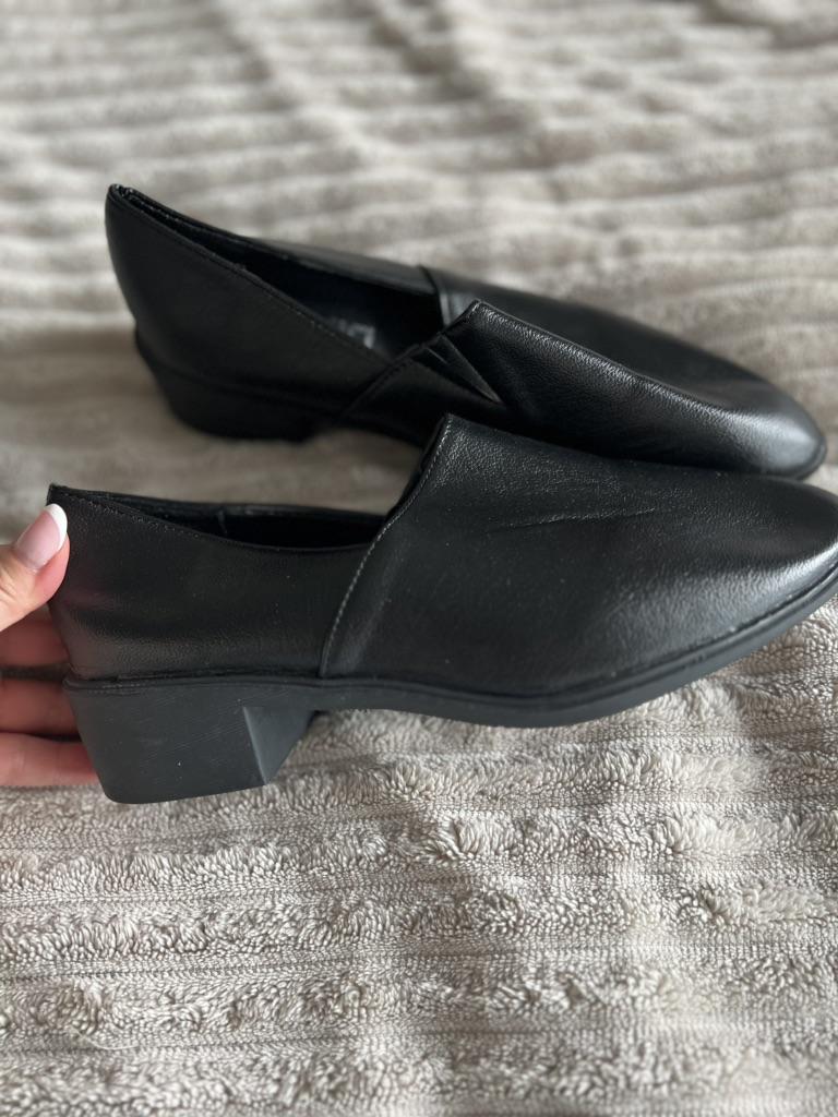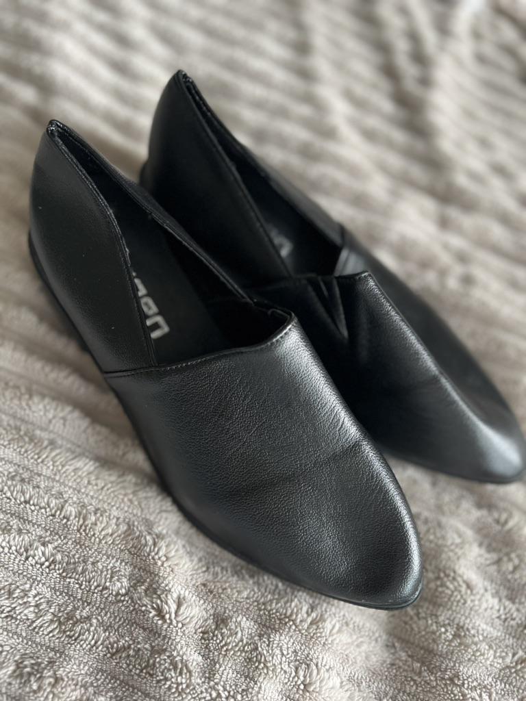 En ny stil damesko med tykk hæl og middels høy hæl, med spiss tå og sko i mykt skinn