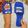 Fashion Fashion Versatile Woman Shoes 2025summer New Square Toe Flat Shoe Comfort Womens Metal Buckle Slippers Simple Women Flat Sandals